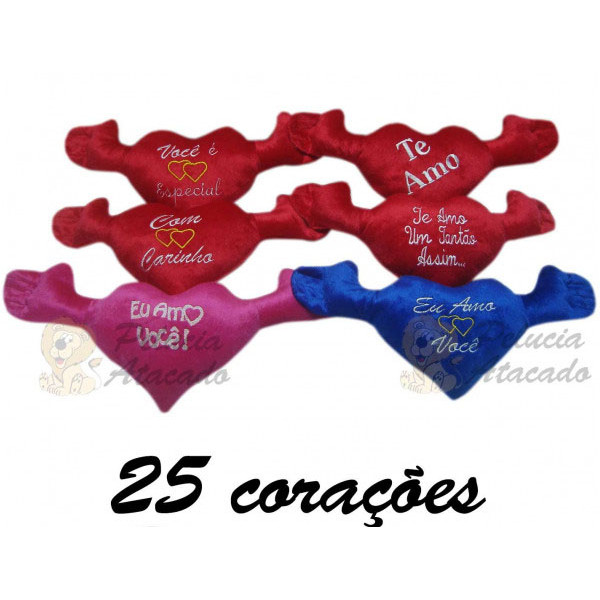 25 Corações com braço sortidos. Com bordado computadorizado e fino acabamento